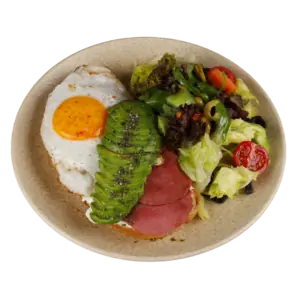 Salamlı Yumurtalı Ekmek Üstü 450 TL Çeri Domates, Salatalık, Göz Yumurta, Macar Salam, Kızarmış Ekşi Mayalı Ekmek, Avokado, Nar Ekşili Sos, labne peyniri, mevsim yeşillikler,