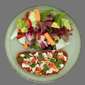 Yağlı Beyaz Peynirli Cevizli 370 TL Acuka, Domates, Ceviz İçi, Kekik, Kızarmış Ekşi Mayalı Ekmek, Mevsim Yeşillikleri, yağlı beyaz peynir,